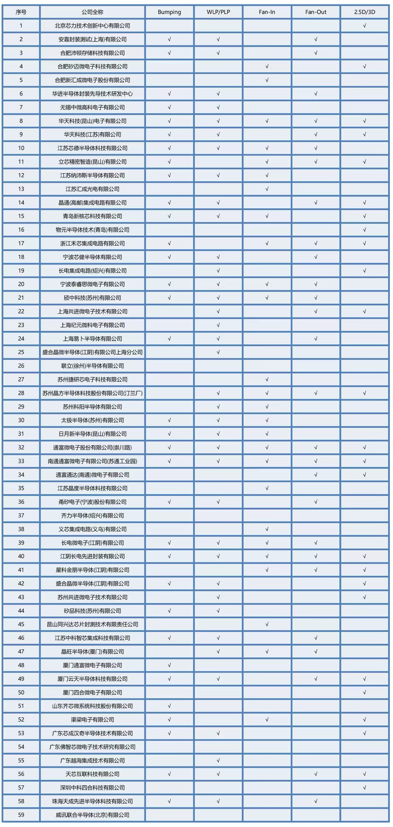 图 9 中国先进封装产线布局情况