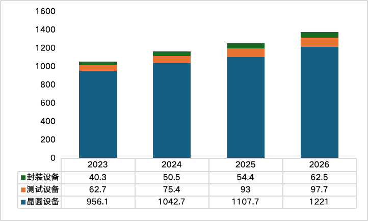 半导体设备作为贯穿半导体全产业链的技术先导者,是半导体产业发展的基础和关键支撑。近年来半导体设备行业表现出较高的增长态势。人工智能应用推动芯片创新需求,促使企业扩大产能和投资先进制程,是设备市场增长的核心动力。同时,设备架构复杂性增加及对高带宽存储器(HBM)的需求也推动了后端设备市场发展。2025年全球半导体制造设备销售额预计同比增长7.4%至1255亿美元,创历史新高。2026年有望进一步增长至1381亿美元,主要受先进逻辑、存储器及技术转型需求推动。