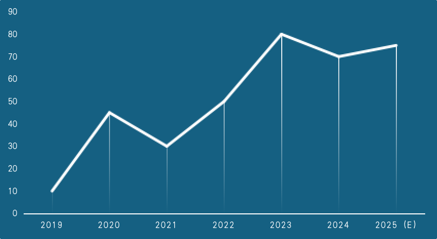 2025年,人工智能大模型的发展将继续发酵,推动高性能芯片的应用需求。同时,包括汽车和工业设备在内的非人工智能芯片市场预计将缓慢复苏,将带动全球半导体产品的整体销售增长。根据世界半导体贸易统计组织(WSTS)的预测,2025年全球半导体市场销售额预计将达到7280亿美元,同比增长11.2%。
