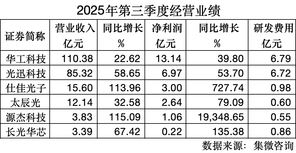 当AI算力需求以“每3.5个月翻一番”的速度增长,作为数据传输“核心引擎”的光通信芯片,正迎来产业变革。2025年三季度,A股光通信芯片赛道六家核心企业——长光华芯、仕佳光子、源杰科技、光迅科技、华工科技、太辰光的三季报密集披露,数据显示行业“高增长成常态,交付能力成护城河”的特征。