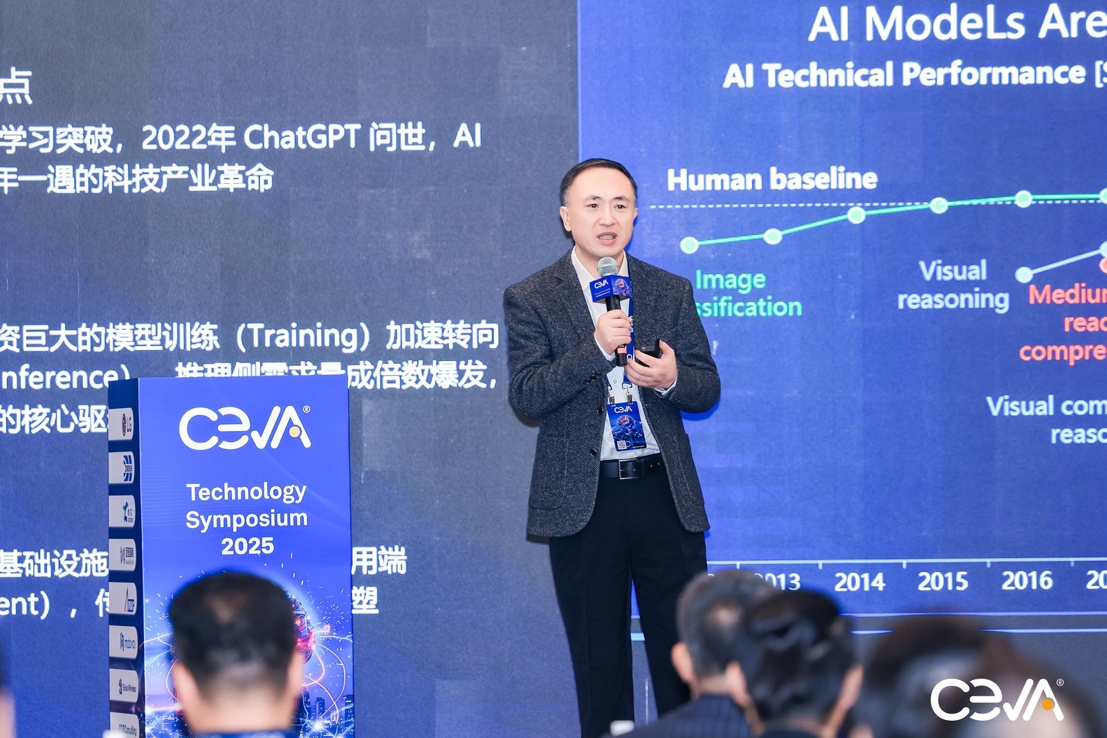 11月11日,全球领先的智能边缘领域半导体产品和软件IP授权许可厂商Ceva公司在上海长荣桂冠酒店举办2025 Ceva技术研讨会。会上,博通集成创始人/董事长张鹏飞发表《智能时代端侧AI“芯”机遇》的主题演讲。张鹏飞指出,AI引发的百年一遇工业革命正重塑产业格局,端侧AI凭借爆发式成长有望成为AI普及的核心推动力,而无线传输、端侧计算、低功耗三大技术将成为行业竞争的关键。