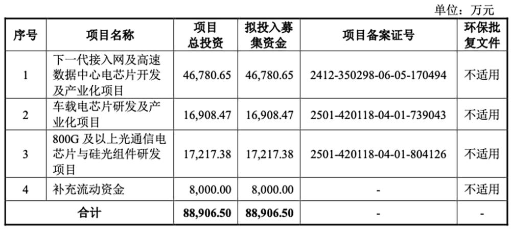 此次IPO,优迅股份实际募资总额为10.3亿元,扣除发行费用后募集资金净额为9.28亿元。这些资金将投入下一代接入网及高速数据中心电芯片开发及产业化项目、车载电芯片研发及产业化项目、800G及以上光通信电芯片与硅光组件研发项目、补充流动资金等项目。