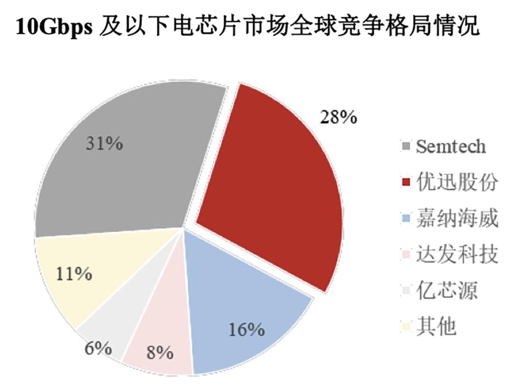 根据ICC数据,2024年度,优迅股份在10Gbps及以下速率产品细分领域市场占有率位居中国第一、世界第二。