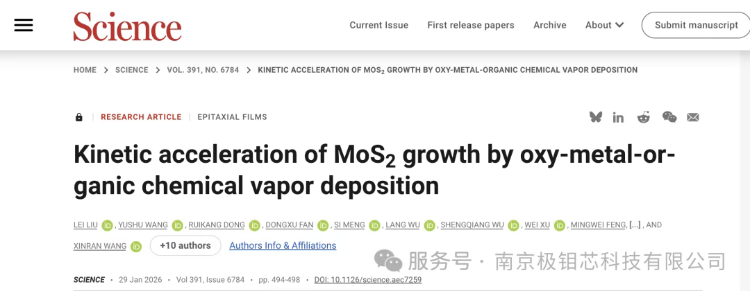 1、极钼芯携手南大再登《Science》:定制化装备攻克二维半导体量产动力学难题