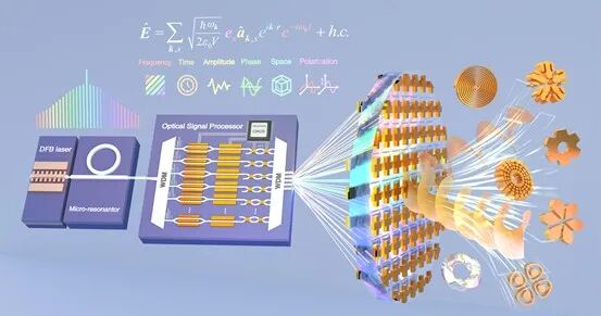 2026年3月4日,北京大学电子学院常林团队与合作者在顶级学术期刊《自然·光子学》(Nature Photonics)在线发表了题为“Full dimensional control of structured microwaves based on microcombs”的研究文章。该团队创新性的利用集成微腔光梳驱动微波光子天线阵列实现结构微波全维度协同控制,并基于此进行通感一体化应用。通过多维度协同复用将6G信道速率提升30倍,同时实现四维高效信息感知。这一成果为6G通信、高精度感知以及量子计算等领域开辟了全新的发展路径。