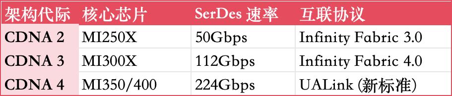 相比之下,AMD 的 SerDes 技术演进路径有所不同。AMD 的高速互联体系更多围绕其 Chiplet(芯粒)架构与 Infinity Fabric 协议展开,并在整体策略上更倾向于拥抱行业标准,例如 PCIe 与 CXL 等接口协议。在 AMD 看来,仅依赖私有互联协议很难在生态规模上与英伟达抗衡,因此它选择推动更开放的互联体系。为此,AMD 联合博通、微软、Meta 等公司发起了 UALink(Ultra Accelerator Link)联盟,试图构建一个面向 AI 加速器互联的开放标准。