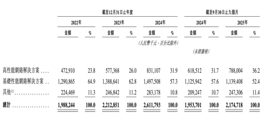 从营业收入的具体构成来看,面向大型数据中心等场景的高性能网络解决方案收入占比不断提升,成为公司业绩增长的核心驱动。2022年,飞速创新高性能网络解决方案营业收入4.73亿元,占比23.8%,2024年则达到8.31亿元,占比31.9%,并在2025年前三季度进一步上升至36.2%。