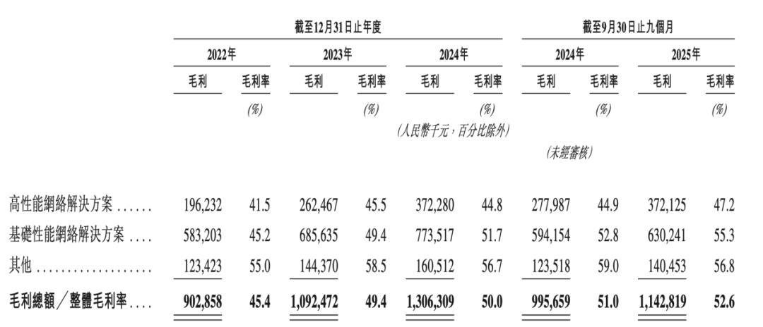 这背后是毛利率的持续抬升。2022年飞速创新的毛利率为45.4%,而2025年前三季度公司毛利率已经达到52.6%,无论是高性能还是基础性能解决方案业务的毛利率均处于上升态势。