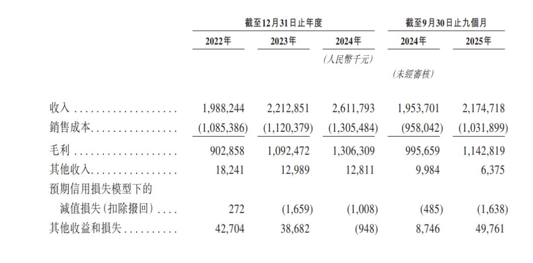 业绩方面,招股书显示,2022年、2023年、2024年及2025年前三季度,飞速创新收入分别为19.88亿元、22.13亿元、26.12亿元及21.75亿元,净利润分别为3.65亿元、4.57亿元、3.97亿元及4.23亿元,经调整净利润分别为3.88亿元、4.70亿元、4.08亿元及4.61亿元,净利润率分别为18.3%、20.6%、15.2%及19.5,毛利率分别为45.4%、49.4%、50%及52.6%。