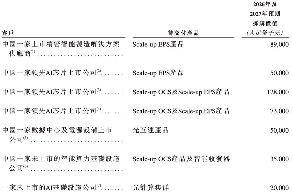 具体而言,在2025年第四季度,曦智科技已获得来自中国一家主要通讯设备及ICT基础设施供应商(包括约8200个Scale-up OCS模块)及一家AI计算芯片开发商(包括约2000个Scale-up OCS模块)的多份采购订单,