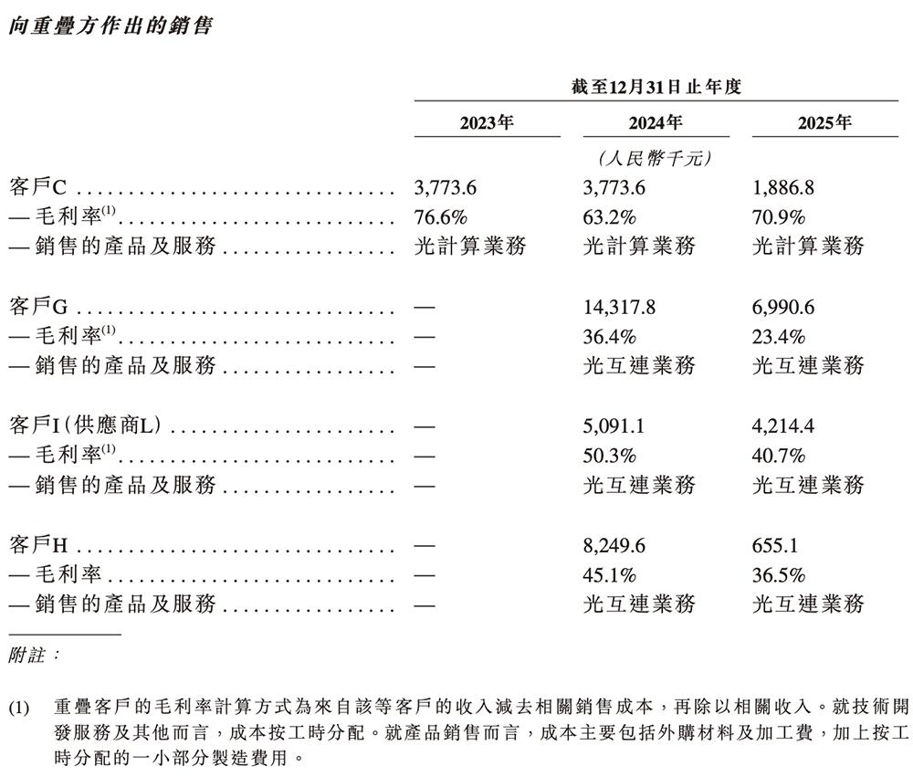 客户C、客户G、客户I (供应商L)及客户H同时亦是曦智科技的供应商。