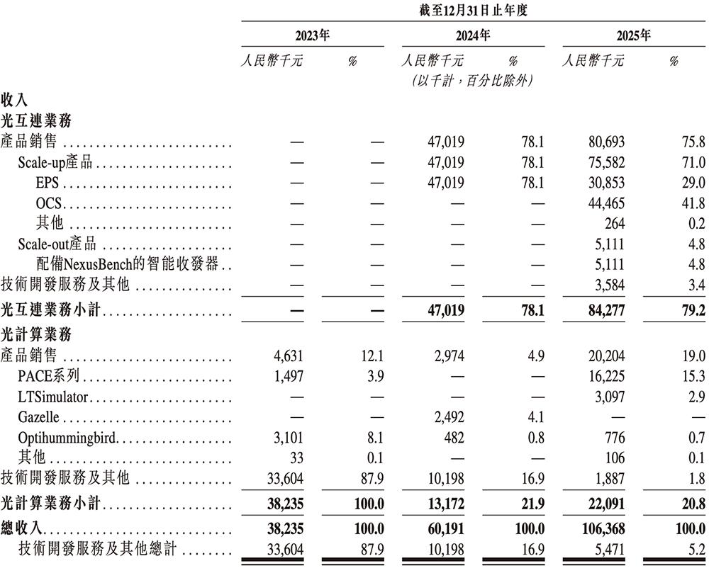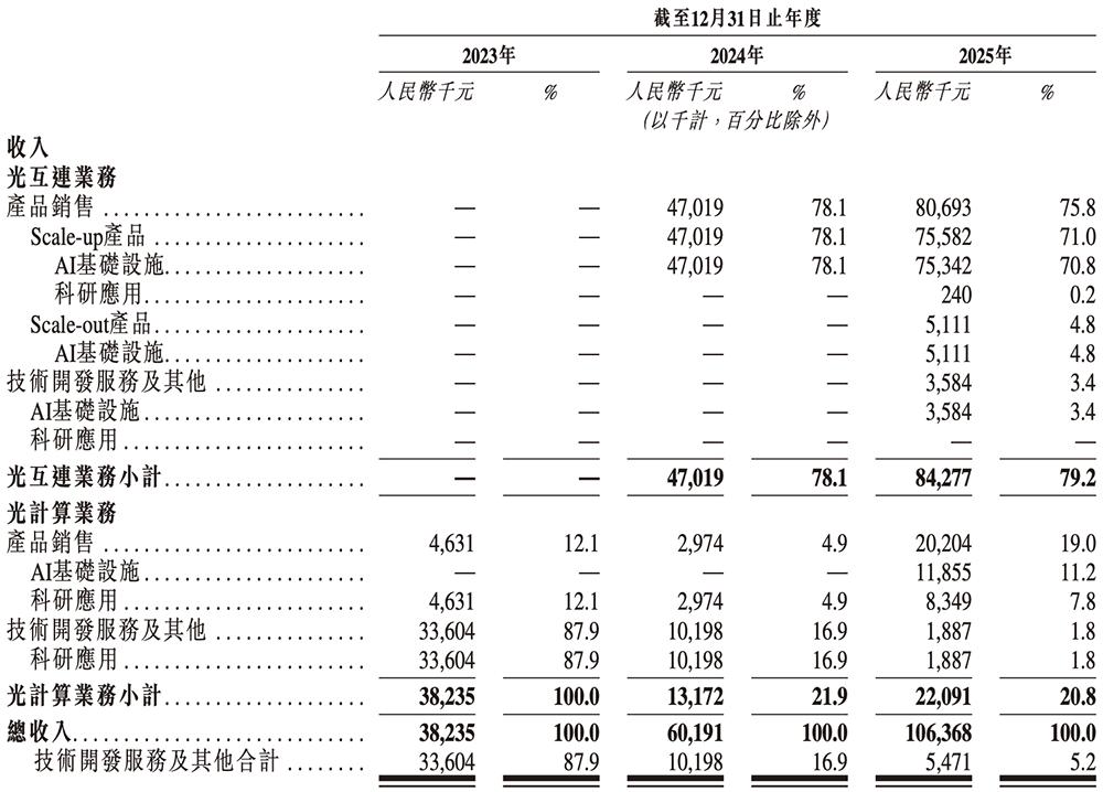 其光互连产品及服务主要部署在数据中心,作为AI基础设施,包括构建超节点;光计算产品及服务最初主要于科研场景中采用,自2025年起,光计算硬件直接在商业AI基础设施采用。