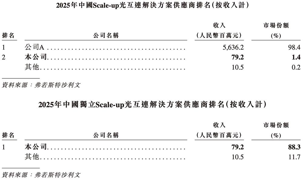 按2025年收入计,曦智科技排名第二。在独立Scale-up光互连解决方案供应商中,曦智科技在2025年按收入计排名第一,产生收入7920万元,占市场份额约88.3%。