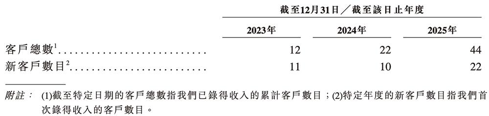 作为一家处于早期阶段的公司,曦智科技仍在建立客户基础的过程中,从2023年至2025年累计服务的客户总数由12名稳步增至44名,且客户组合趋向多元化。