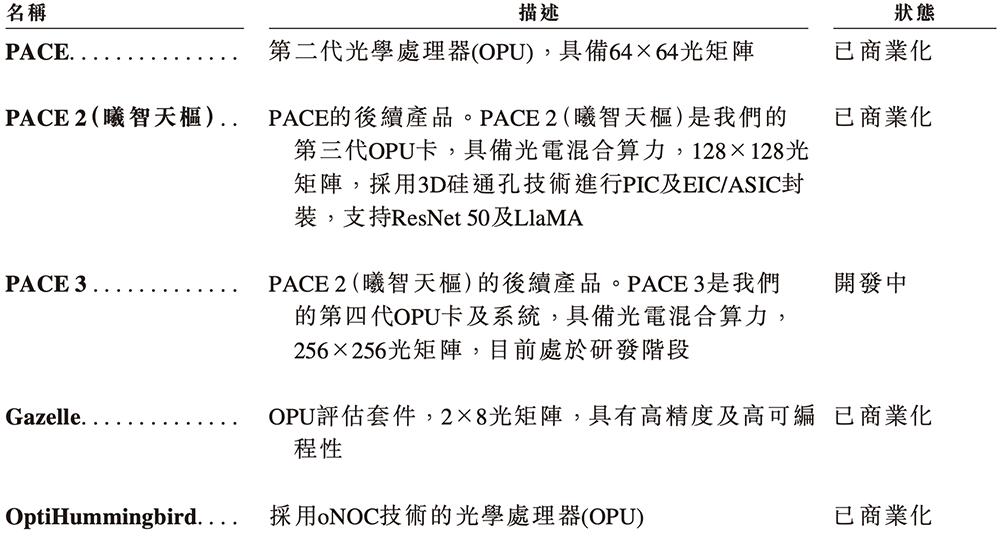 (2)光计算产品:PACE、OptiHummingbird、Gazelle及PACE 2 (曦智天枢)。