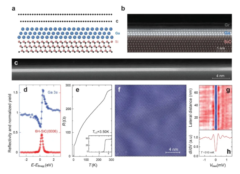 图1: 碳缓冲层辅助限域外延的石墨烯/三层镓/碳化硅异质结以及超导性质表征