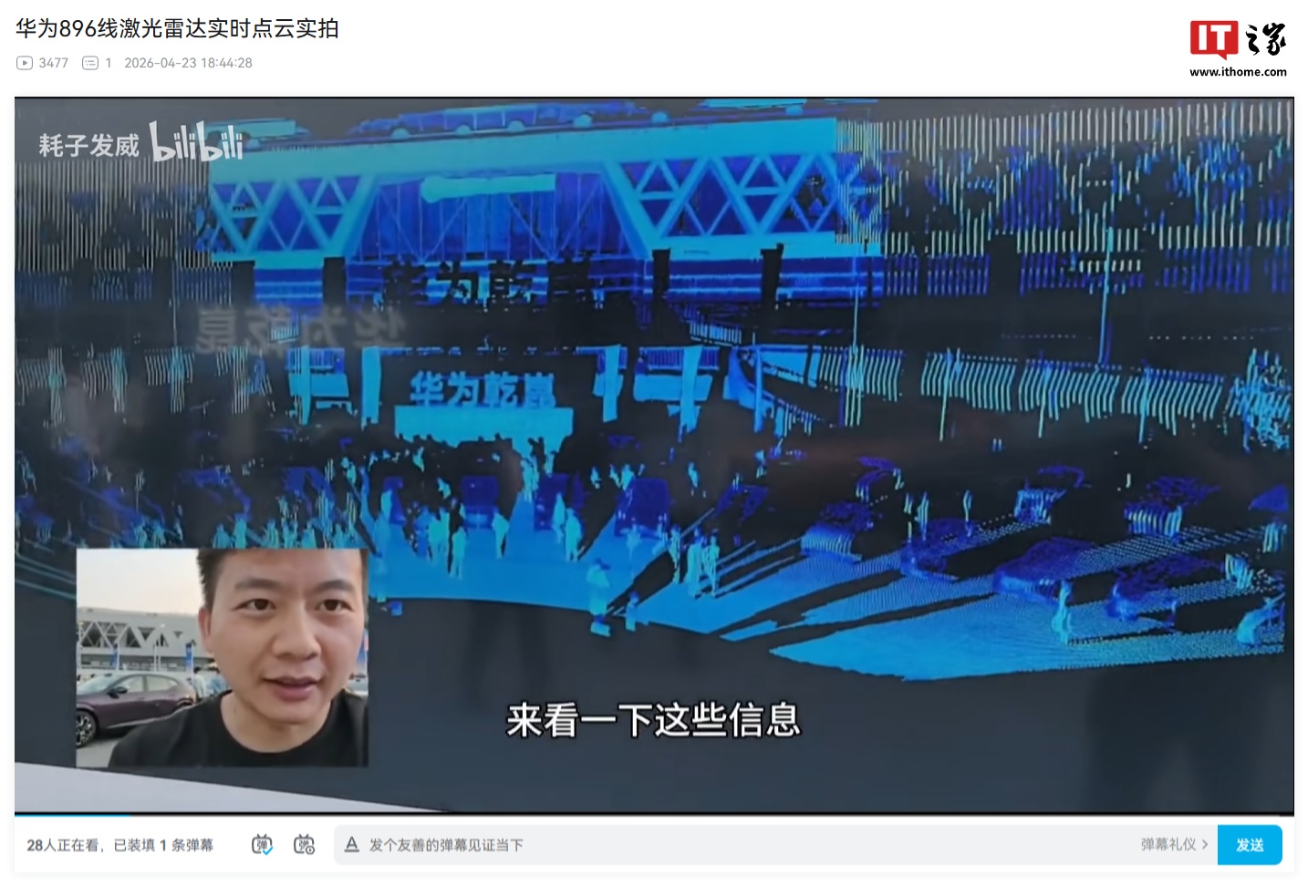 虽然技术大会已经结束,但是更多信息正逐步释出。据博主 @耗子发威 分享,华为在乾崑技术大会的场外布置了一个展示位,用于展示 896 线双光路图像级激光雷达点云效果。