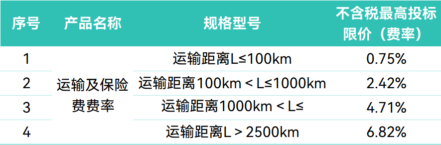 此外,运输及保险费率也按运输距离划分四档,最高不超过6.82%。