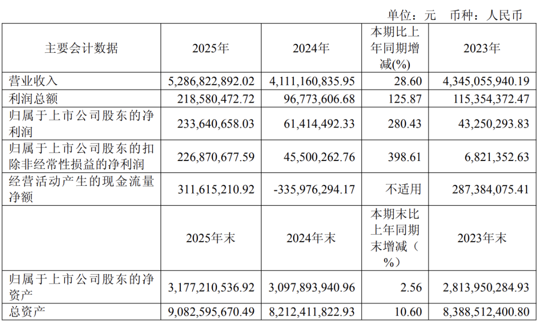 永鼎股份发布2025年年度报告。报告期内,公司实现营业收入52.87亿元,同比增长28.60%;实现归属于上市公司股东净利润2.34亿元,同比增长280.43%,主要因本期对联营企业权益法确认的投资收益较高。